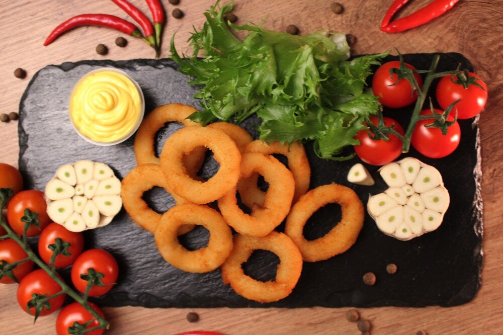 Хрустящая горячая закуска с мягкой серединкой. Сочные луковые кольца подаются с пылу с жару. Подачу закуски можно дополнить любым соусом по вкусу (9 шт.)